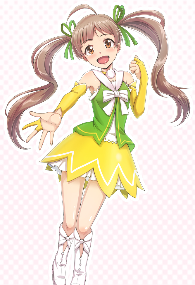 星梨花はひたすら純真で好奇心旺盛なところが保護したくなります。コウノトリ云々言ってたのに保健体育100点ですって。先生問題操作しませんでした? 衣装はアイマス2のバイタルサンフラワー衣装を他のアイドル達のパーツを寄せ集めて描きました。ボーカル衣装が似合うはずと。